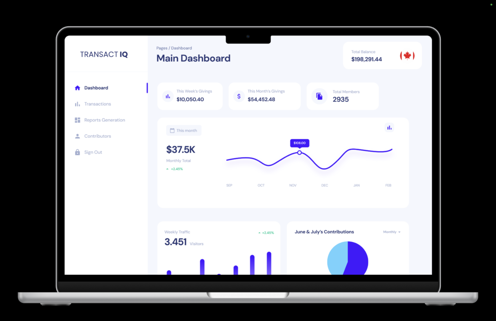 TransactIQ is an all-in-one donation and financial tracking platform designed specifically for churches. Our software automates the collection, organization, and reporting of contributions, including e-transfers and manually entered cash donations. At tax time, churches can generate and send tax receipts with the click of a button, eliminating hours of manual work and reducing errors.